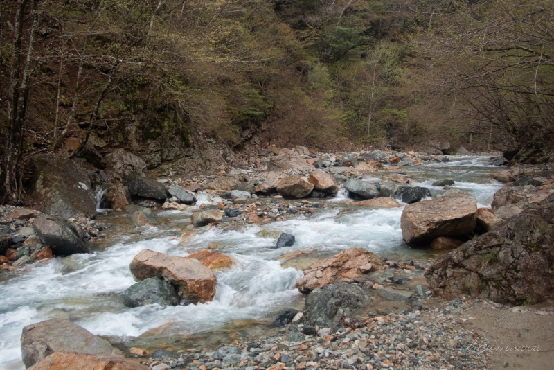 二俣から西俣に入ったところで右岸から大量の土砂が流入しており、本流の流れが大きく変わっていた。