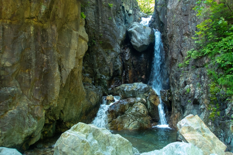 その魅力は天まで届くかのような断崖絶壁と連続して現れる滝