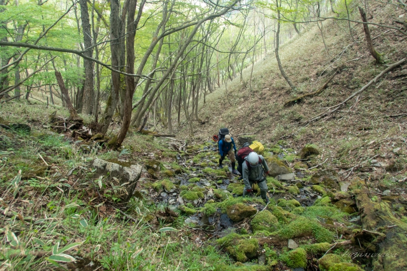 小足沢から松木川を下り、ウメコバ沢に向かう。
