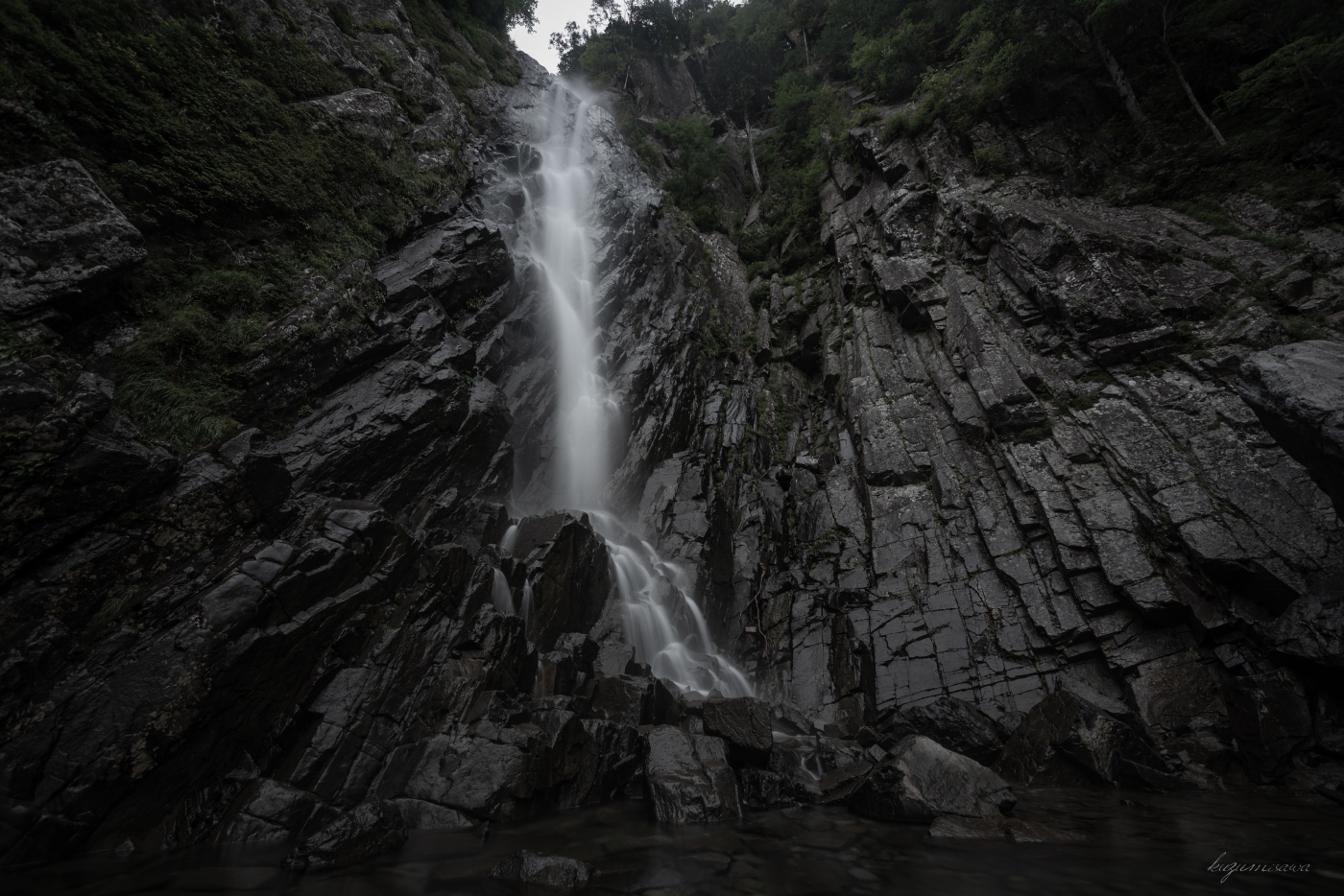 何といっても水に濡れた漆黒の岩盤が美しい。