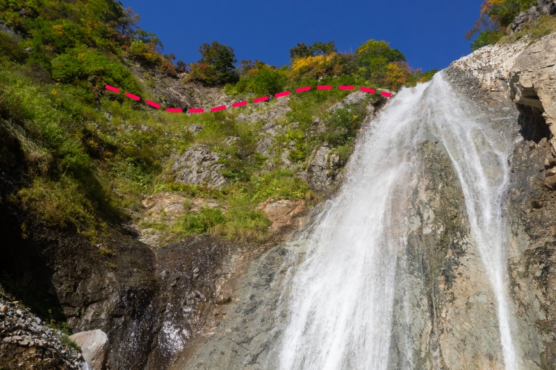 尿前大滝のトラバースは大変刺激的で、生きた心地がしませんでした…