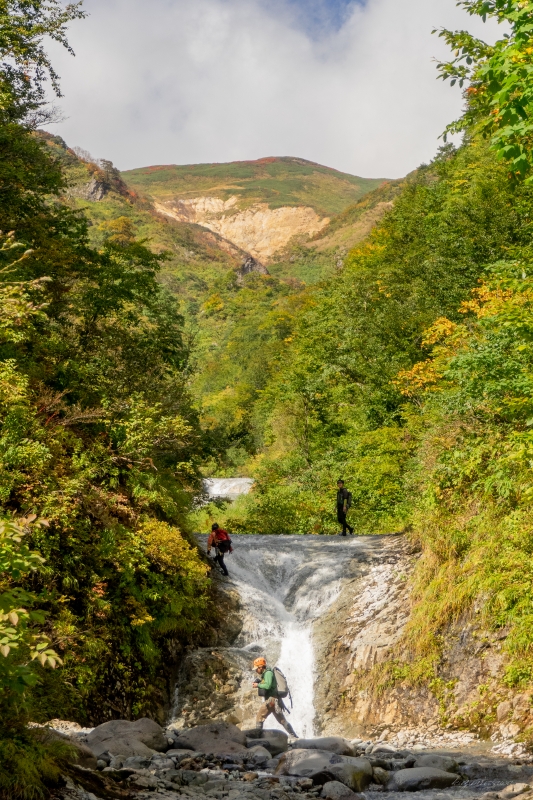 流身左を直登し、無事に尿前大滝のトラバースが終了した。