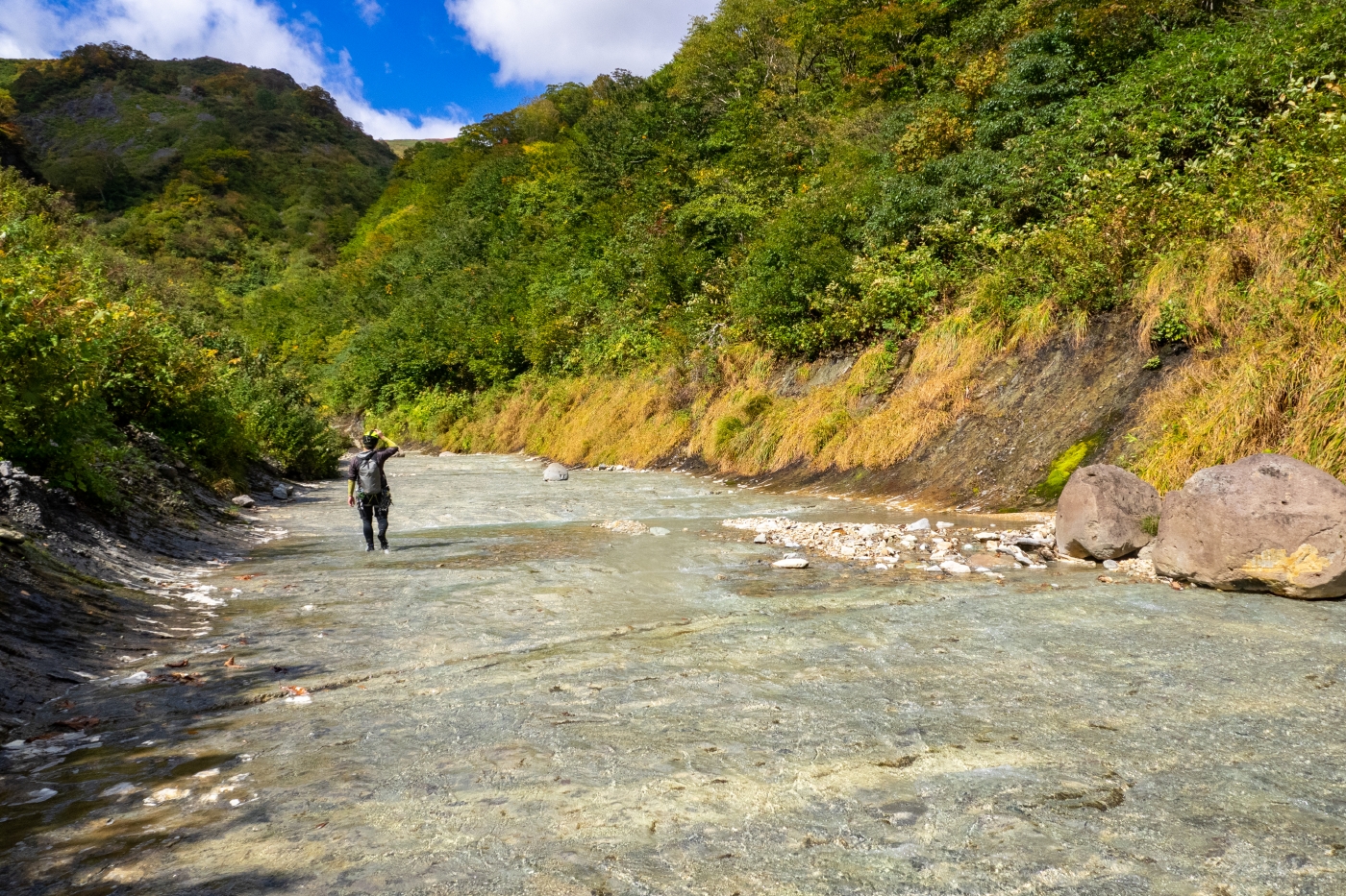 水も美しく、クリーム色のブルーが目立つ沢だ。