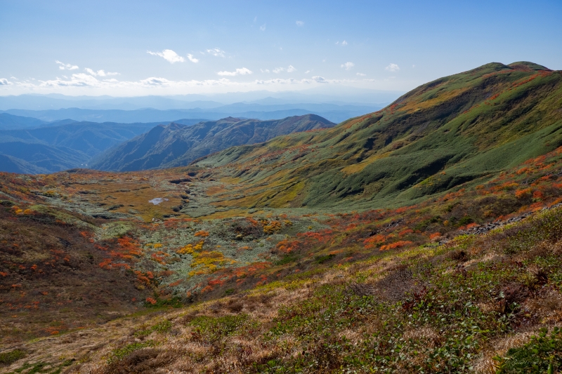 峰楓(ミネカエデ)だろうか、ところどころ紅に染まった山肌が美しい。