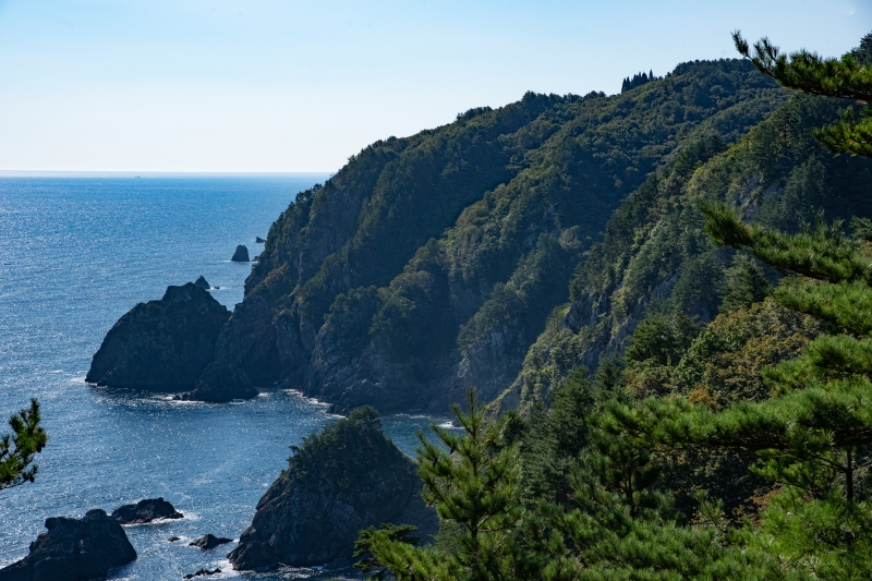 アンモ浦展望台からは落差200mのリアス式海岸を眺めることが出来る。