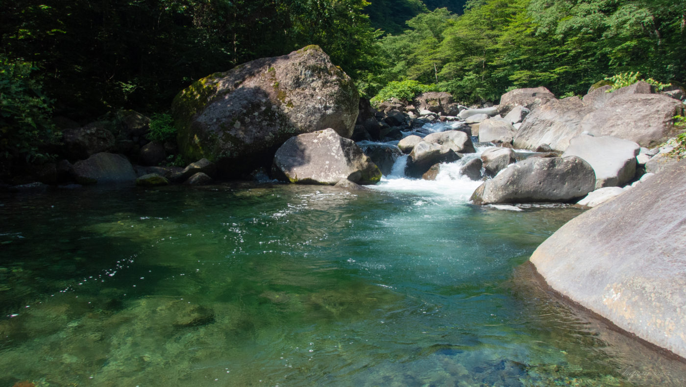 三階の滝から不動の滝へは約40分ほどの沢歩きになります。