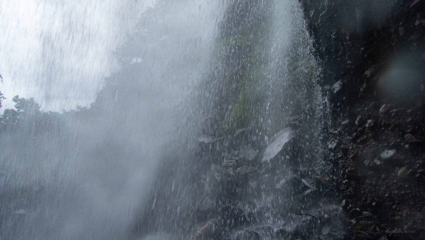三階の滝は滝壺の地形が少々変わっていて、裏見ができるように滝裏が削られていました。