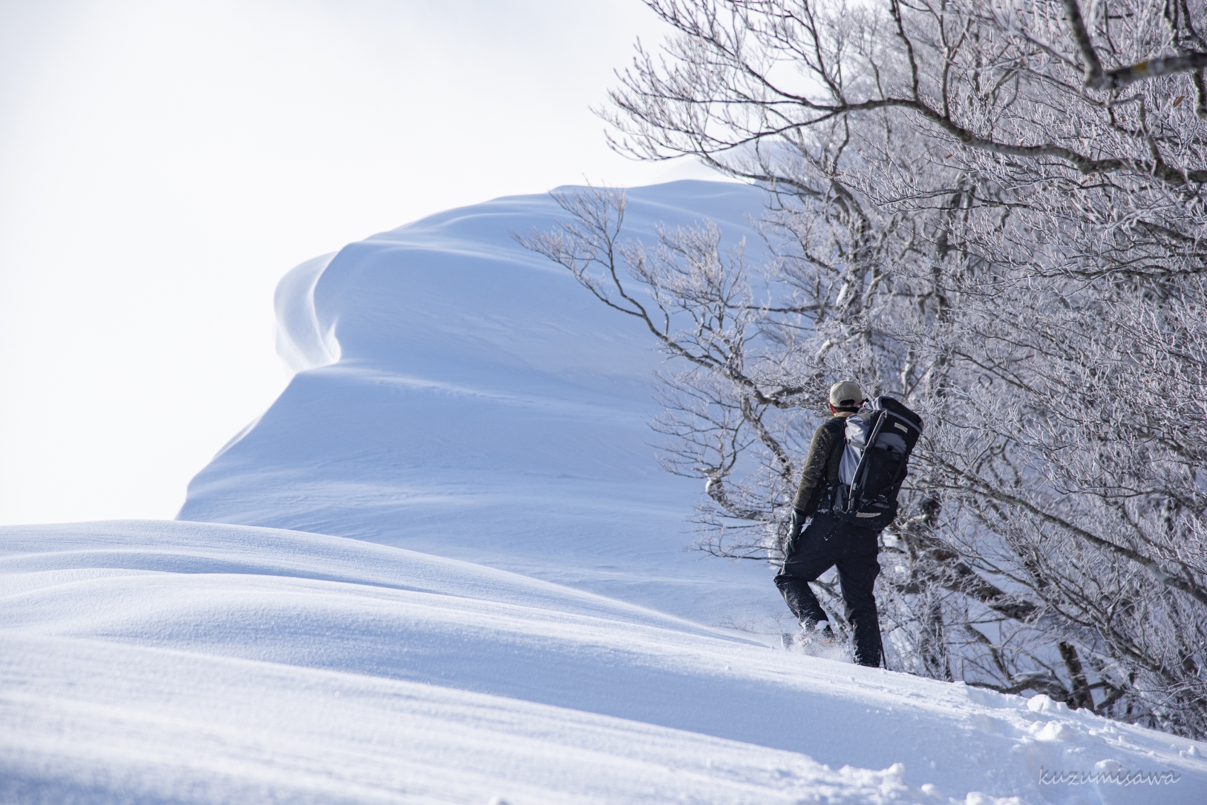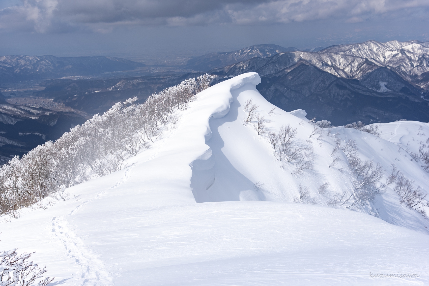 一部、雪庇が崩れかかっていたので迂回。