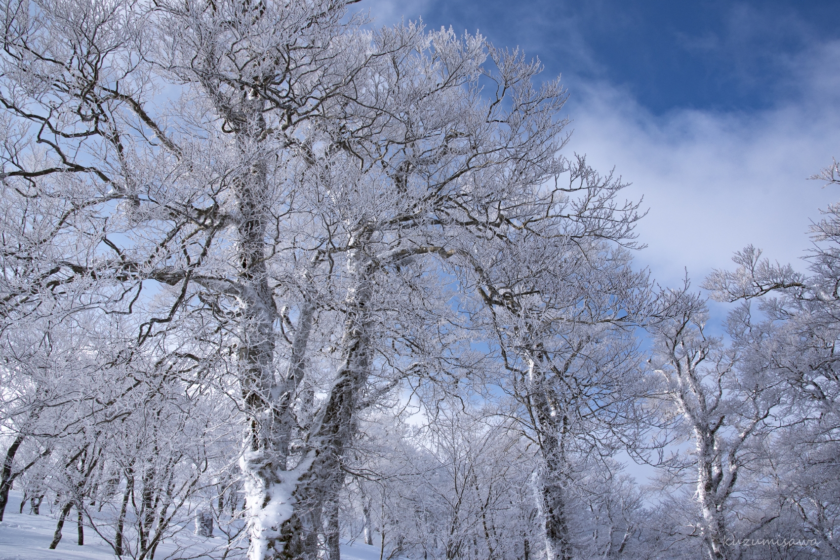やはり青空に霧氷は映えますね。