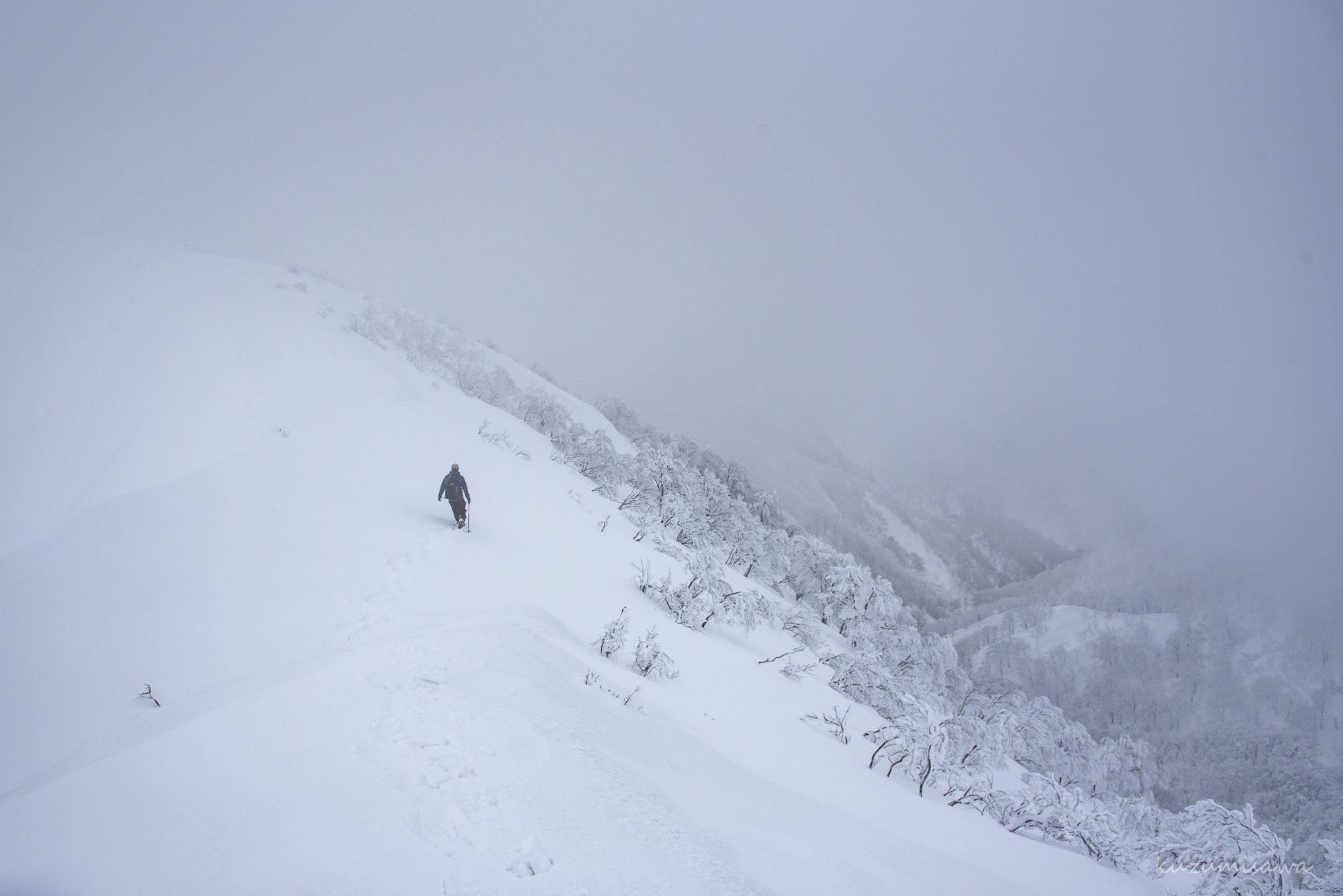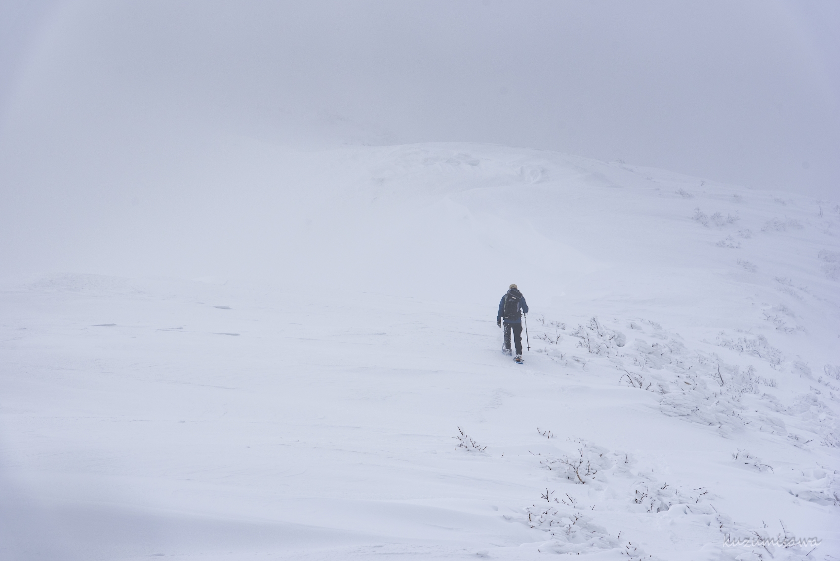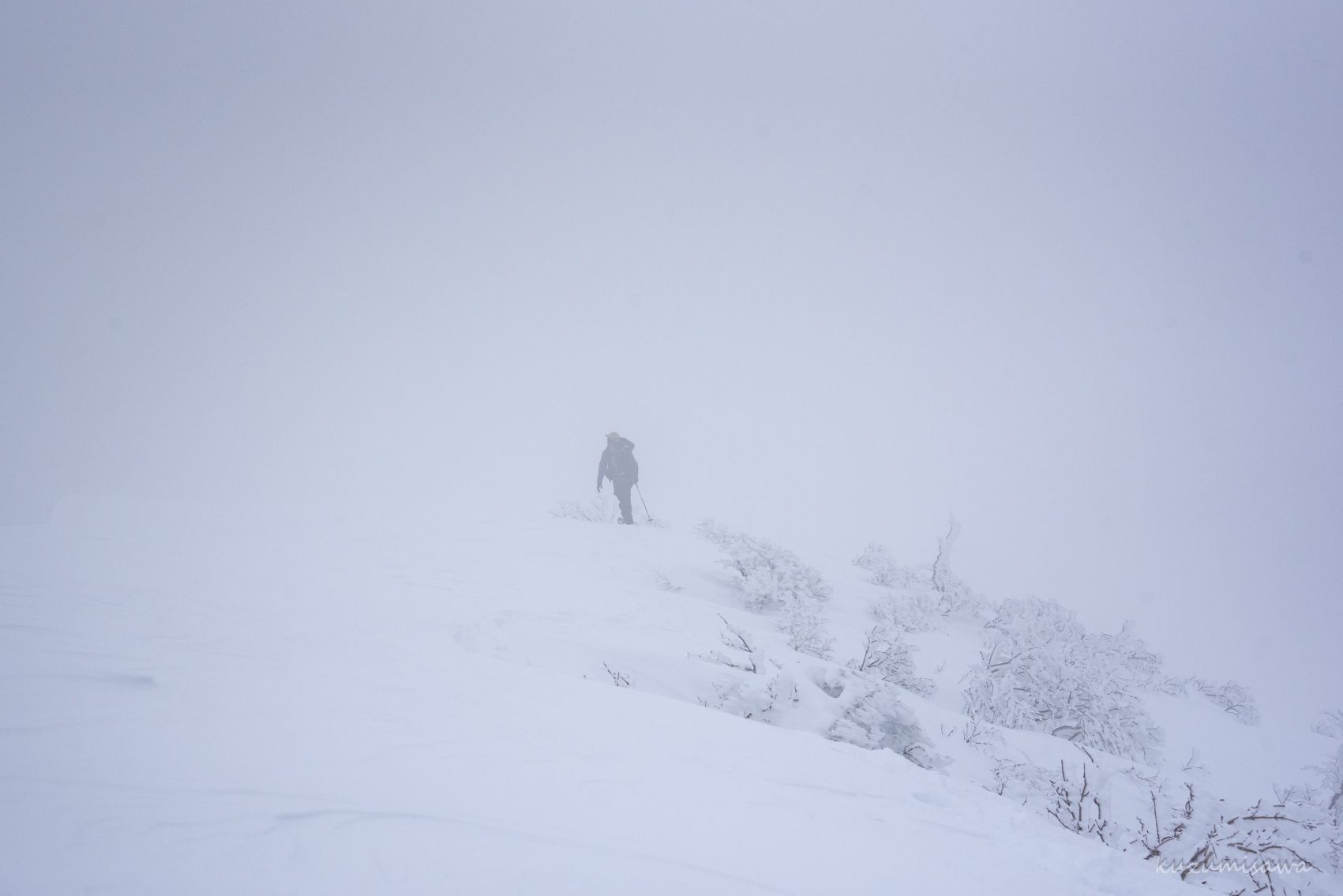 1325m地点からレリーフピークまで進むと、もう完全ホワイトアウト。