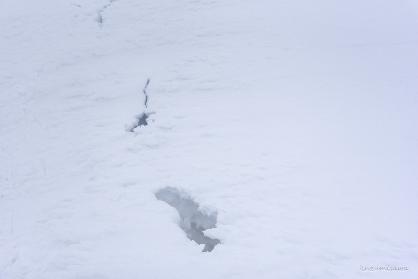前を歩いていた滝ぺい氏がその雪庇の割れ目に落ちた際に、雪庇の上に乗っていた私がその稜線に乗っている雪庇全体が動いたのを感じるというなかなかにスリリングな出来事も…