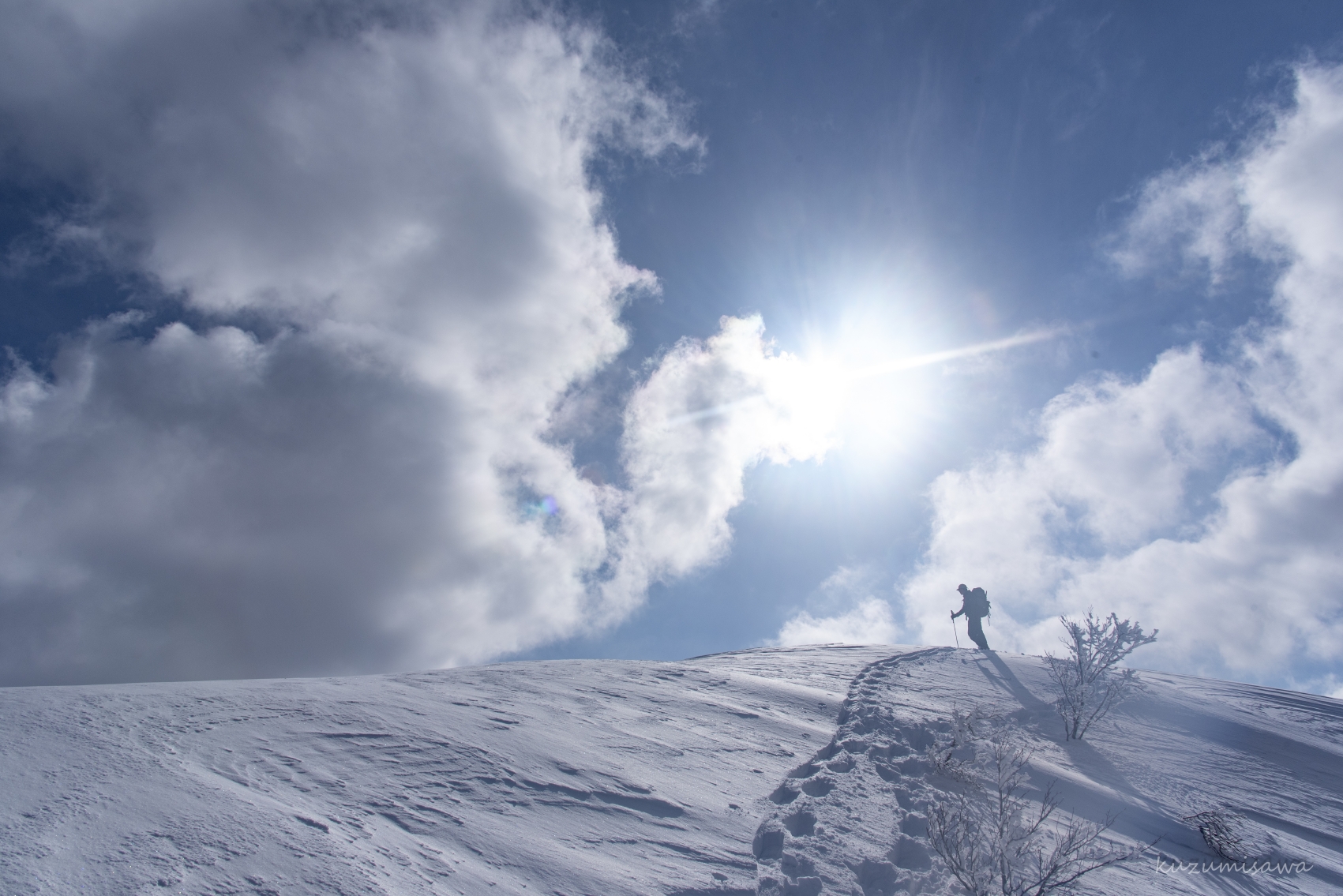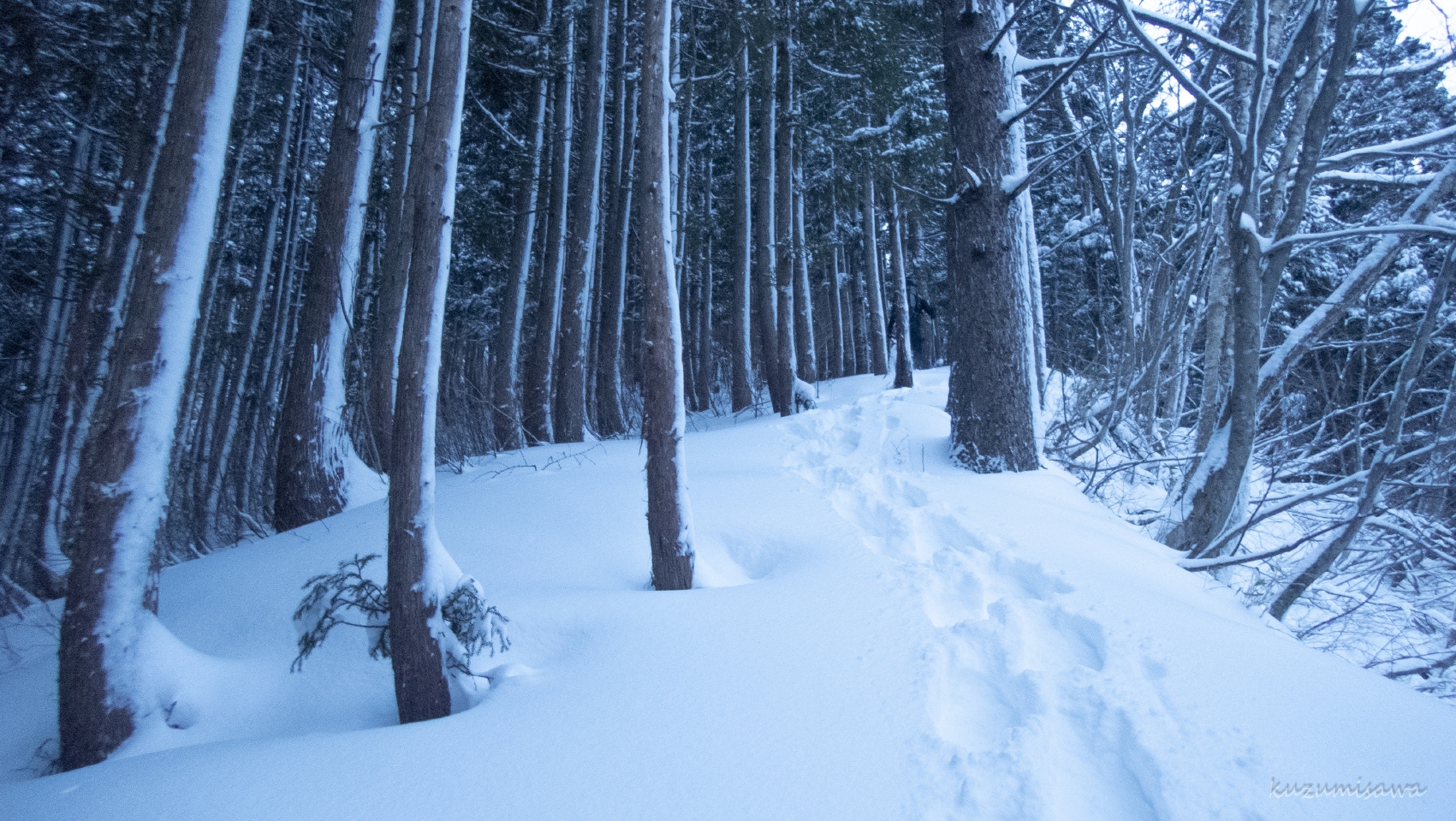 雪山の下山はスノーシューでパウダースノーを走るように下れるので楽です。