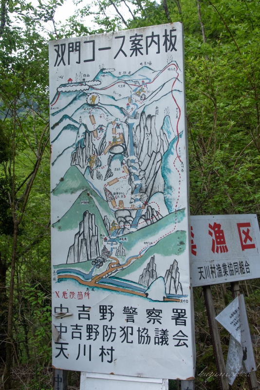 双門の滝に挑戦する前に様々なサイトで見た「双門コース案内板」だ。