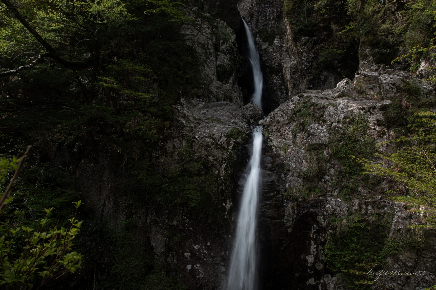 奈良南部の秘境に流れており、訪瀑の難易度は百名瀑の中でもトップクラス。