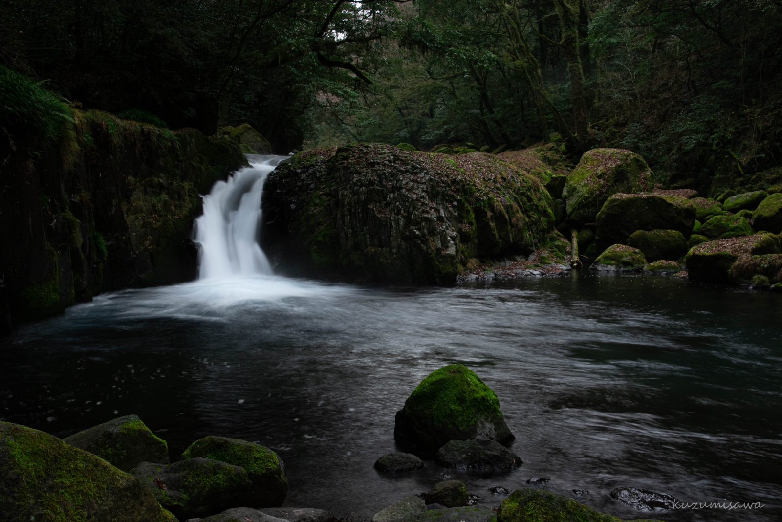 落差は8mほどと小ぶりな滝ですが、この季節でもなかなかの勢いで滝壺に瀑音を響かせていました
