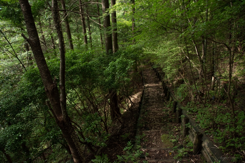 とりあえず路肩のスペースに止め、横倉神社側に歩いてゆくと大樽の滝への看板が見えてきた。