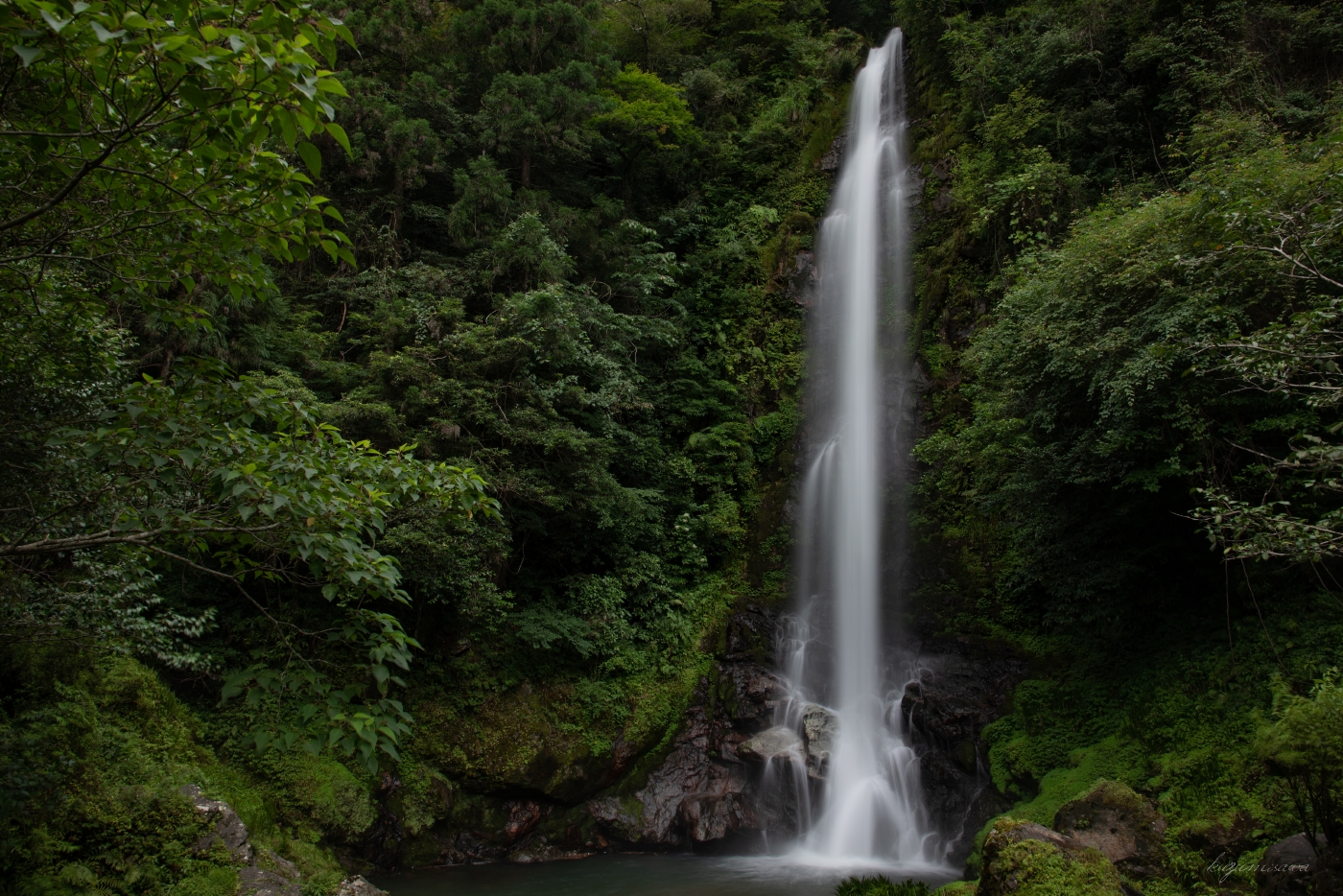端正な流身、周囲の緑、そして均整な円を描いている滝壺が特徴的な滝だ。