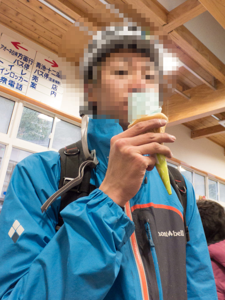 私が食べてたら、それを見た後輩が、一口食べた後輩がどんどん青池ソフトを買っていきます
