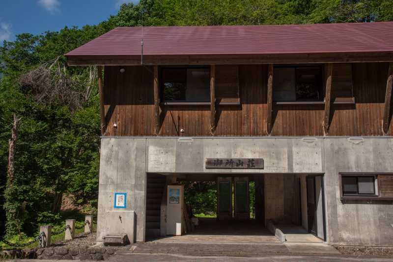 ダムから右岸にわたり林道を走ること20分、御所山荘に到着。