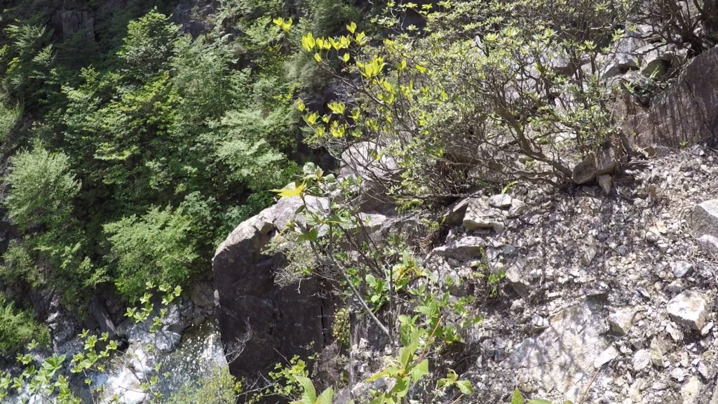 灌木も多いのでホールドには困りませんが、灌木の根っことともに岩も浮いたところも何個かありました