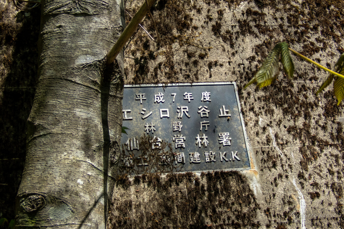堰堤には「エシロ沢」の文字が。「エシコ沢」「エシロ沢」いったいどちらなのだろうか…。