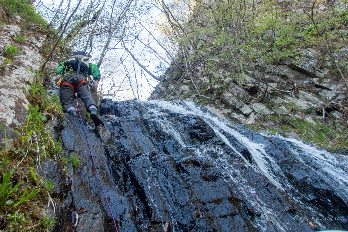 スルスルと登り、上部のナメを眺め懸垂下降。