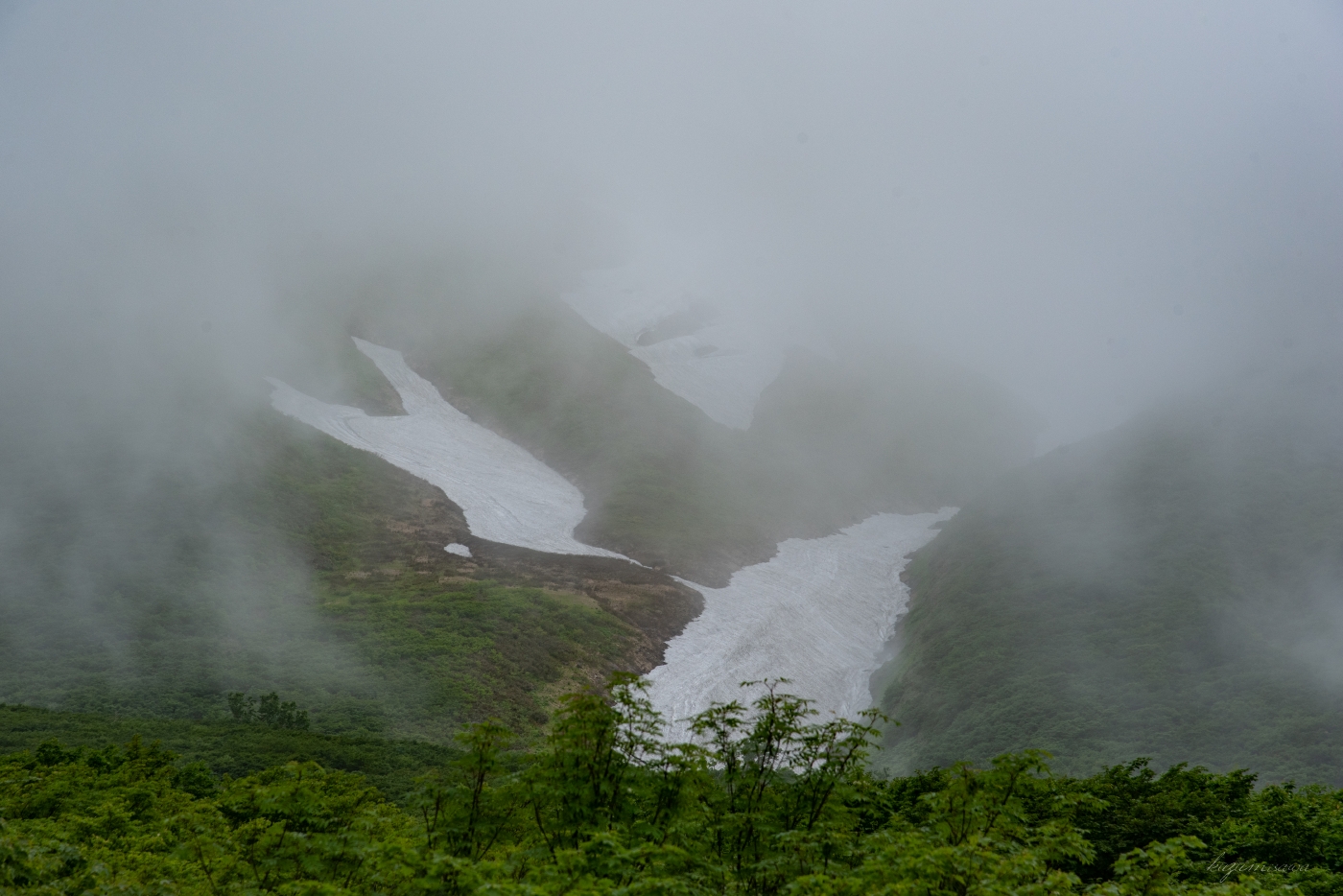 小さな沢の多さから月山は水多い山だな、と感じておりましたが、雪渓からの雪解け水が沢を作っていたようです。