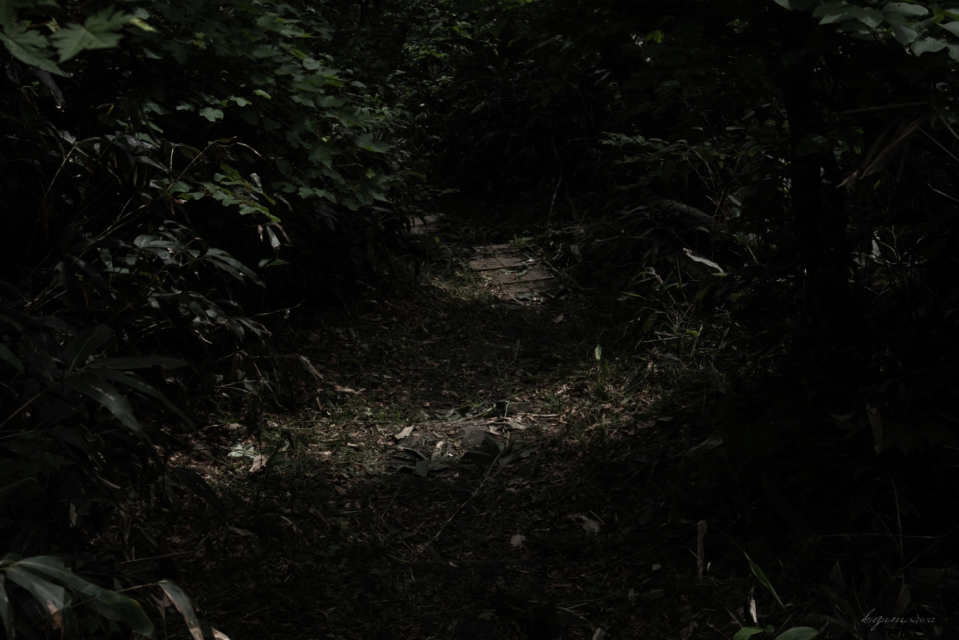リフトと並行する鬱蒼とした登山口道を歩いて行きます。