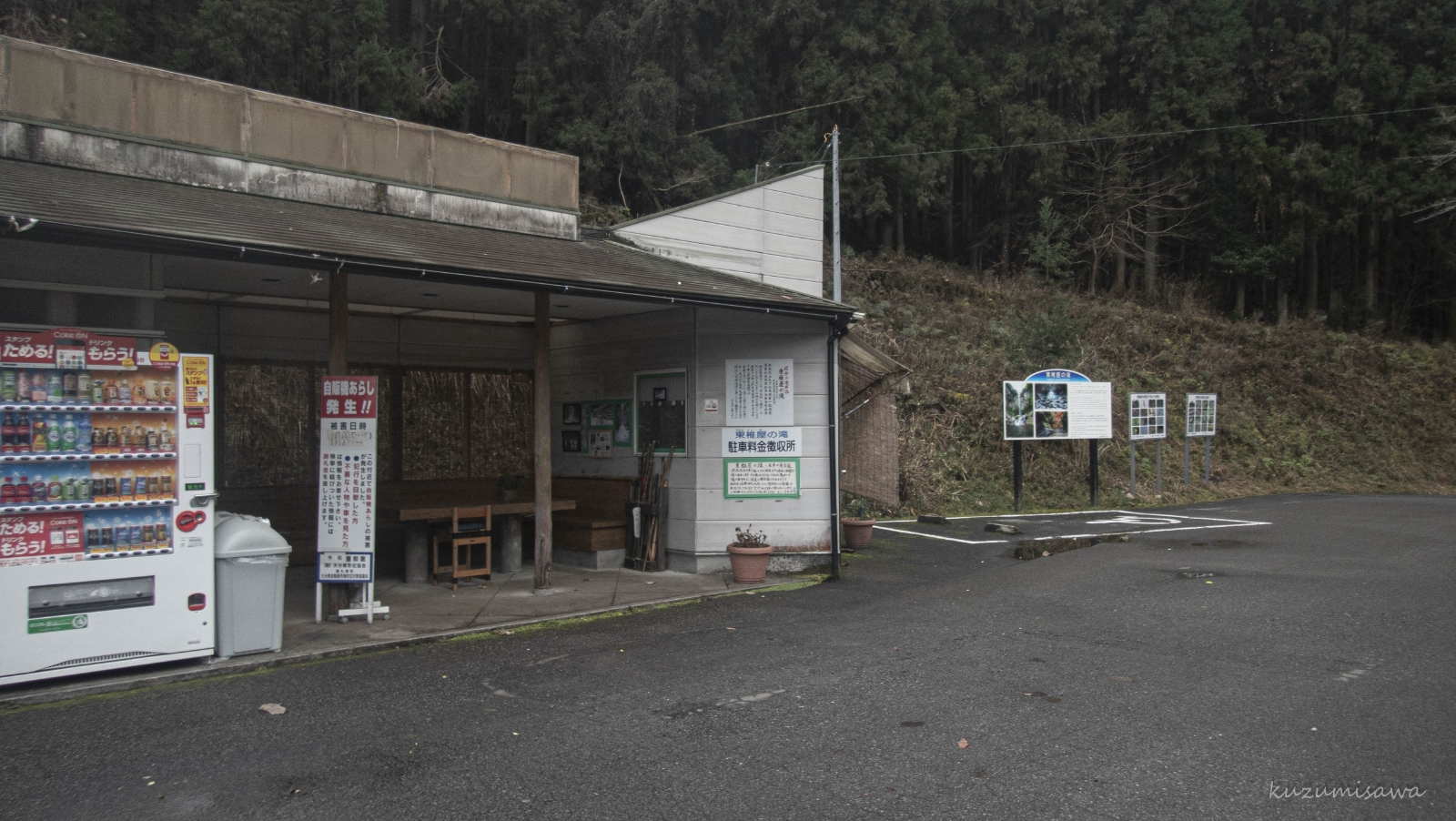 谷間の集落を抜けると「食事処 滝見苑」が見えてきますが、さすがに年末の早朝には営業していません。