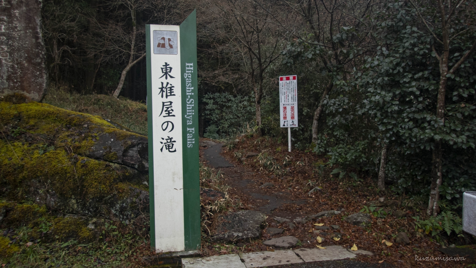 湯布院から県道616号を通り、国道500号に入りしばらく走りますと左手に「東椎谷の滝」の入り口の看板が見えてきます。
