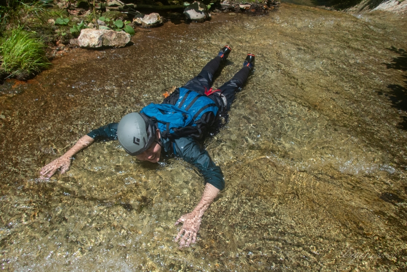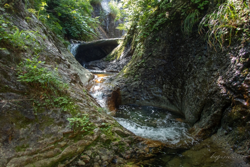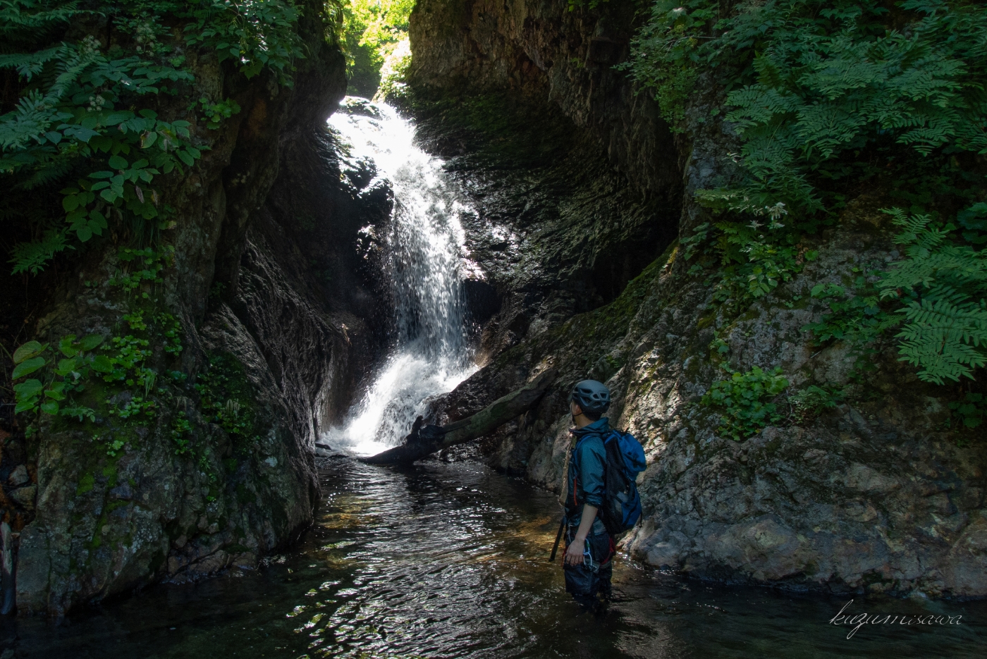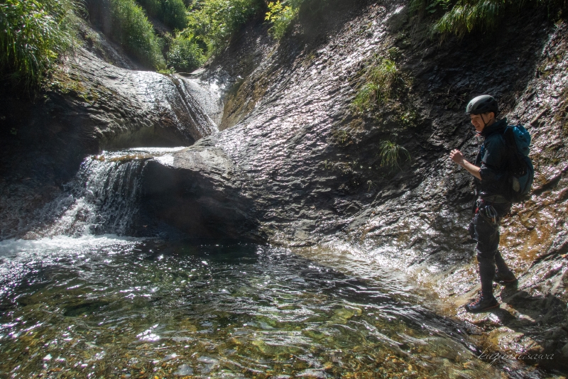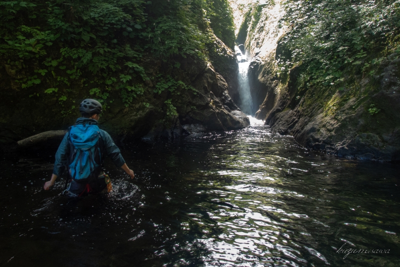 いきなり3mほどの小滝が落ちていて、ここから先ひたすらゴルジュが続く。