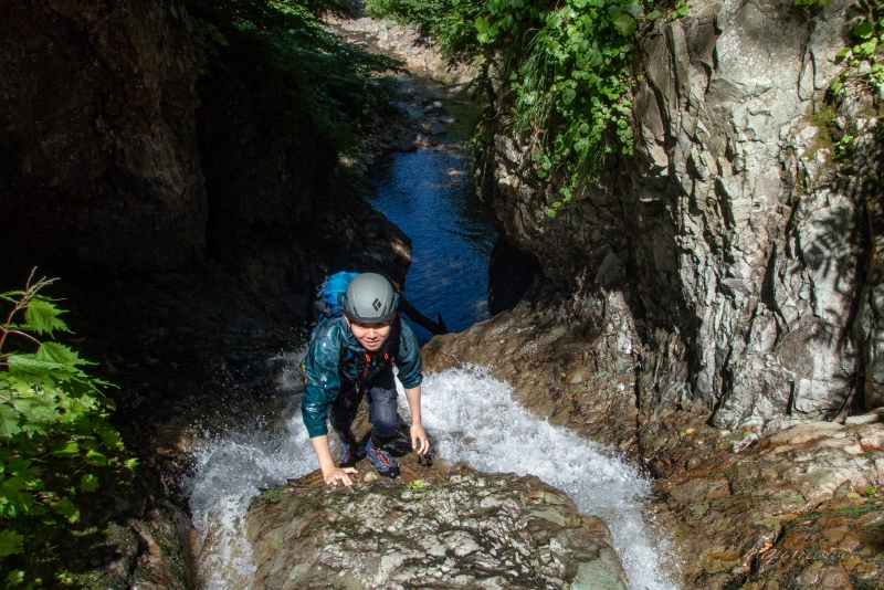 ゴルジュ区間が長く、アスレチックのように小滝を越えても行ける。
