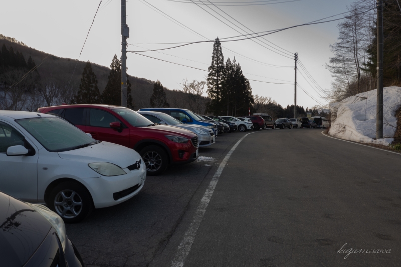 軽自動車一台何とか停められるスペースにねじ込み登山開始。