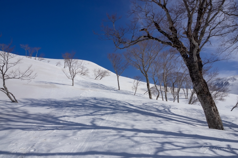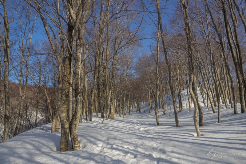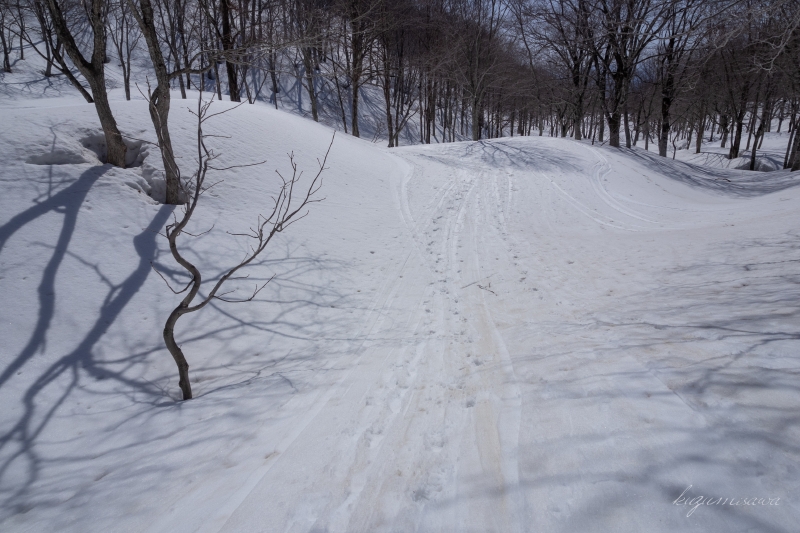 さすがの豪雪地帯の月山エリアでもある程度雪解けは始まってしまっている。