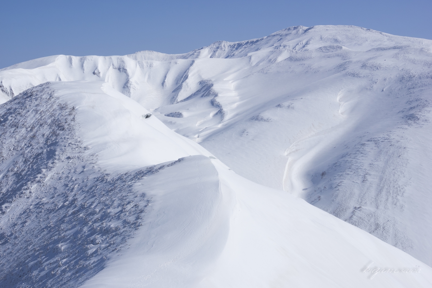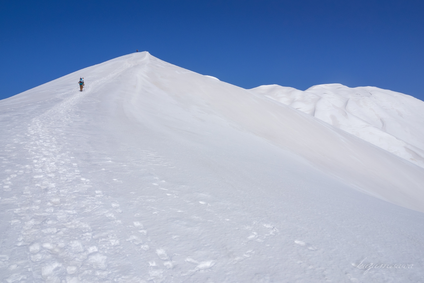 青い空に白い稜線、雪山登山の醍醐味だ。