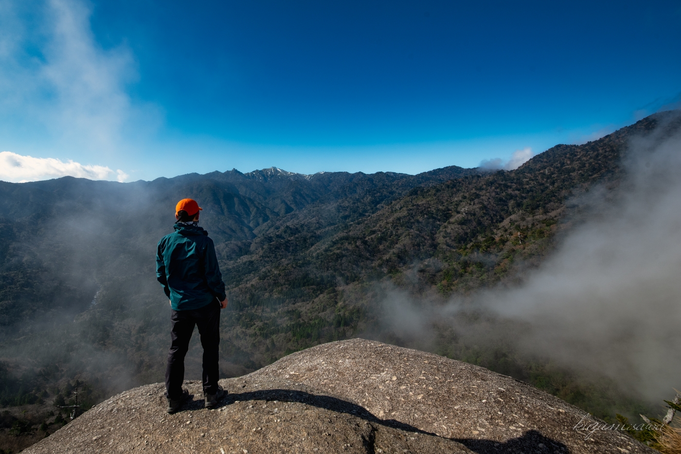 展望はよく、古杉谷越しに屋久島の百名山「宮之浦岳」が見える。