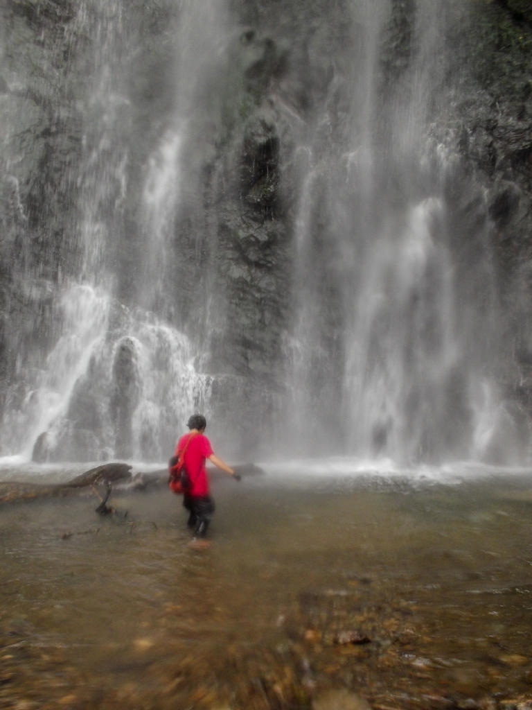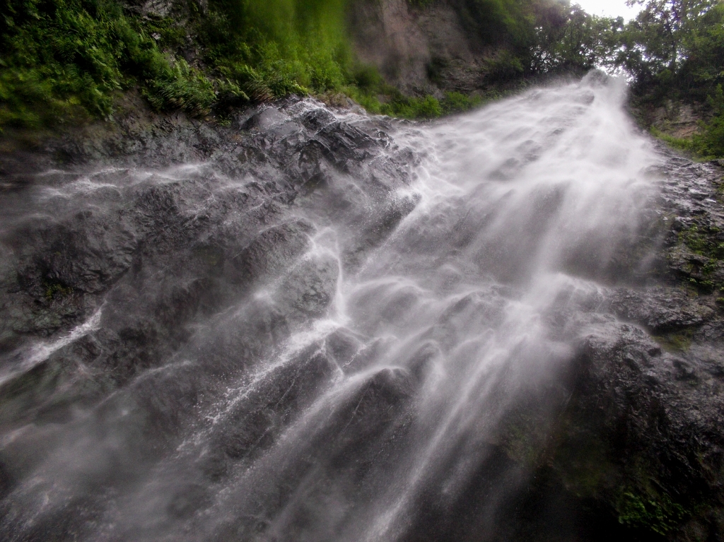 落口から岩肌をしたたり落ちているので、滝壺は深くなく直下まで歩いていけます