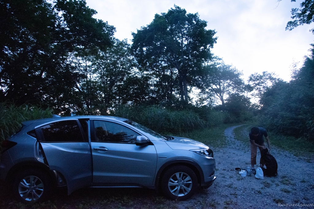 白山一里野スキー場の林道をジリジリと登って行くと路肩に駐車スペースがあります