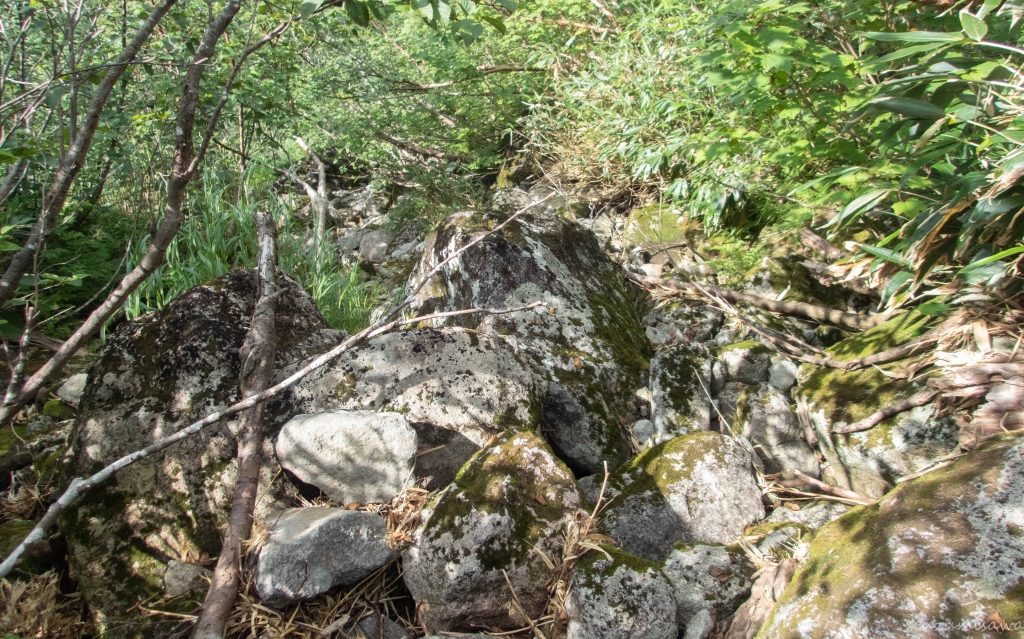 四丈岩からは枯れ沢を降ることになるのですが、おそらくこのラインになると予想