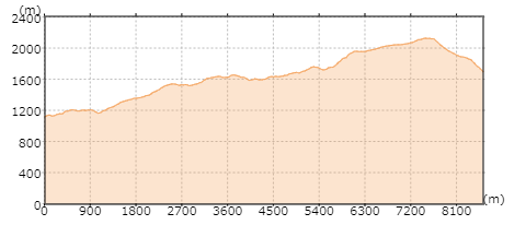 ざっくり測定の行程図なので距離が9kmないようなデータになっていますが(実際は13kmほど)、高低差についてはそこまでの乖離はございません