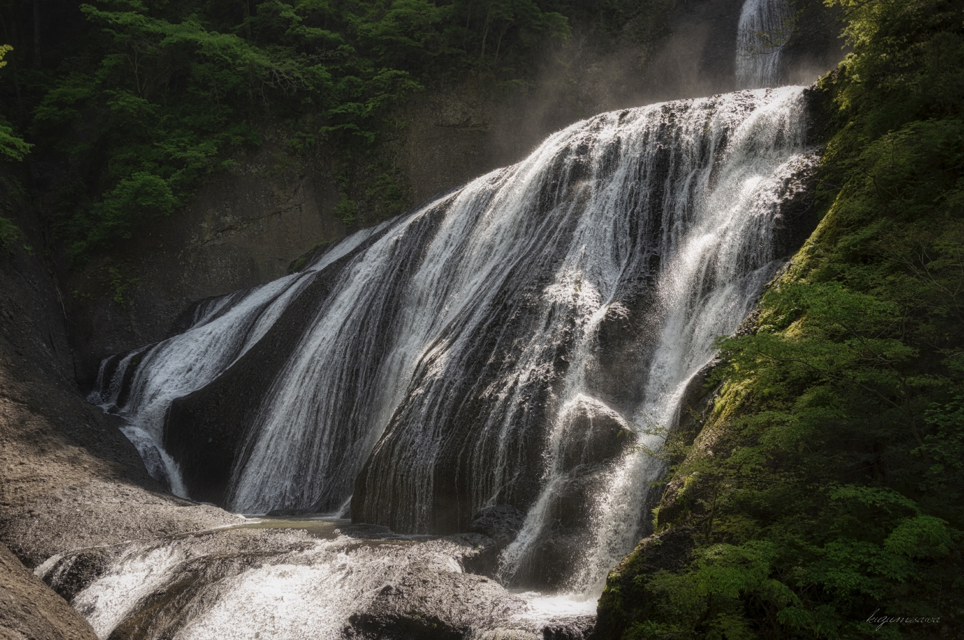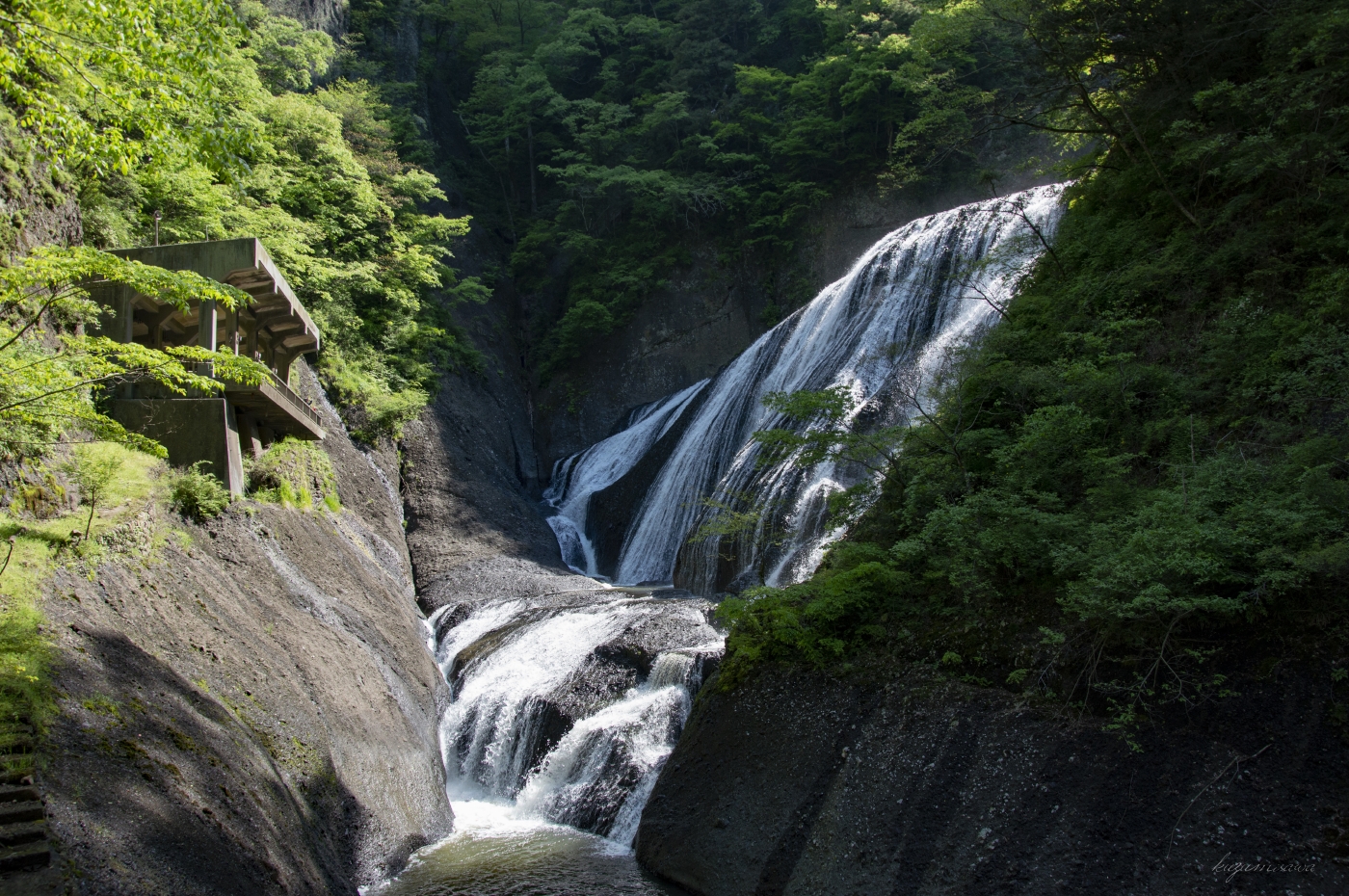 綺麗な四段の滝の段瀑であり、第一観瀑台からではその一段目を見ることができません。