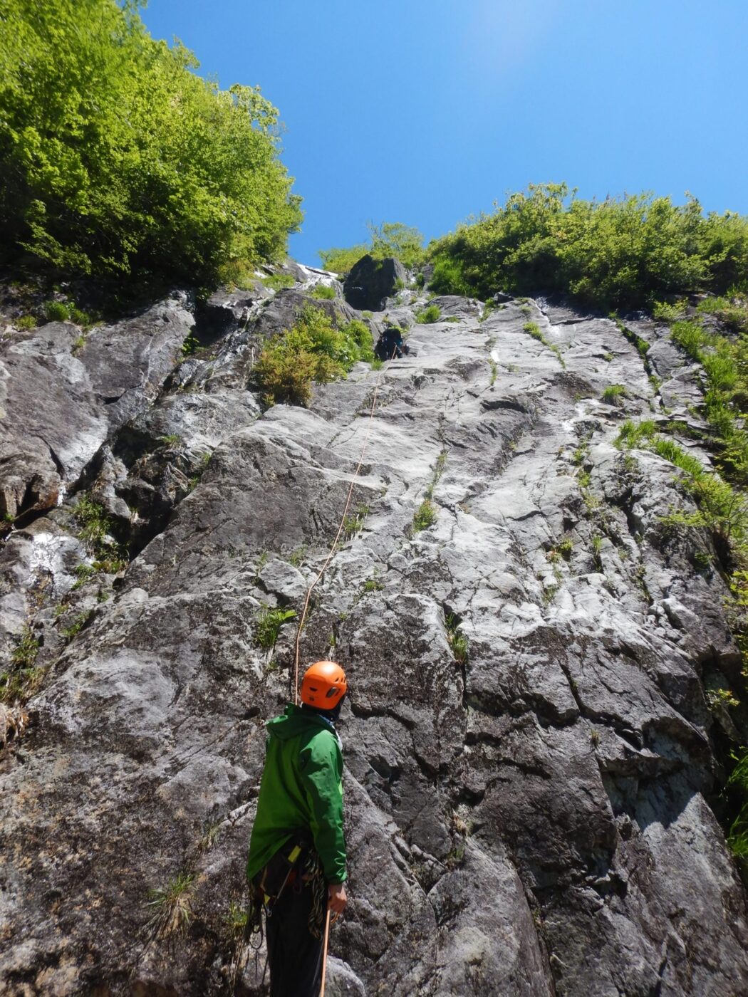 ロープを出し、ここはポムチムがリードで登ってゆく。
