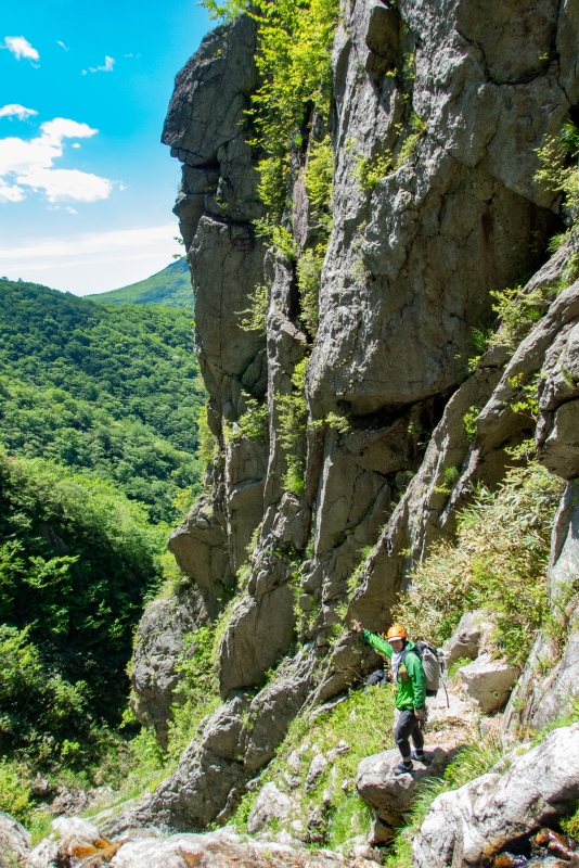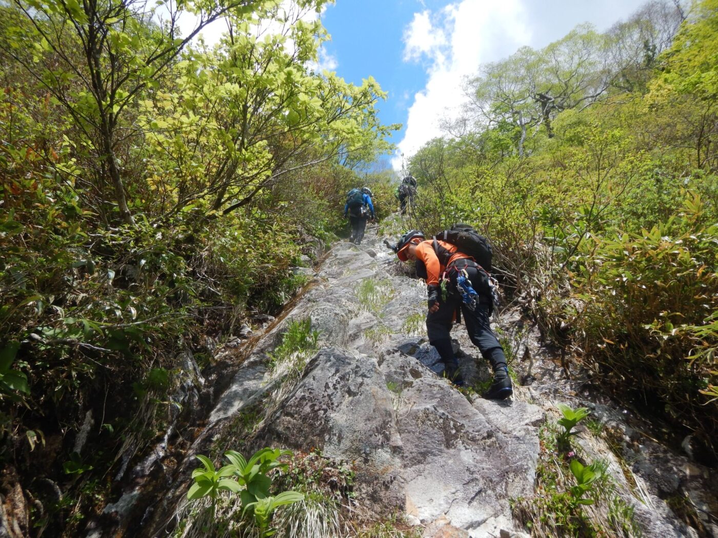 谷川のような素晴らしい景色が続き、ヤブ漕ぎもほとんどなく稜線へ詰め上がれる。下山も井戸沢で楽々。