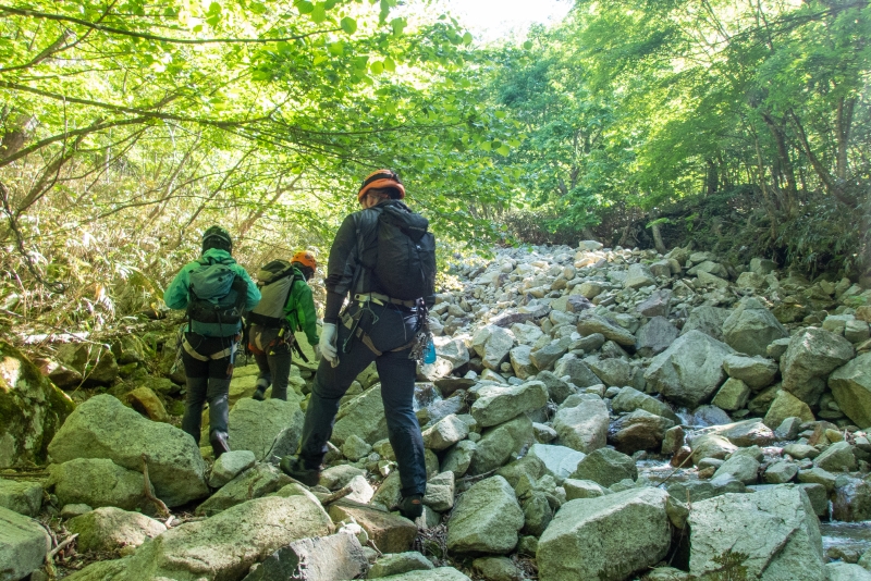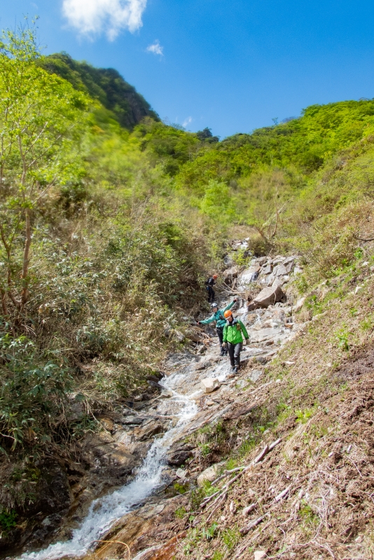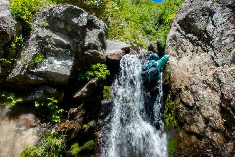日が昇ると雲一つない青空。これは最高の沢登りになりそうだ。