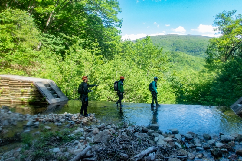 最後の堰堤まで下り、井戸沢の下降が終了。