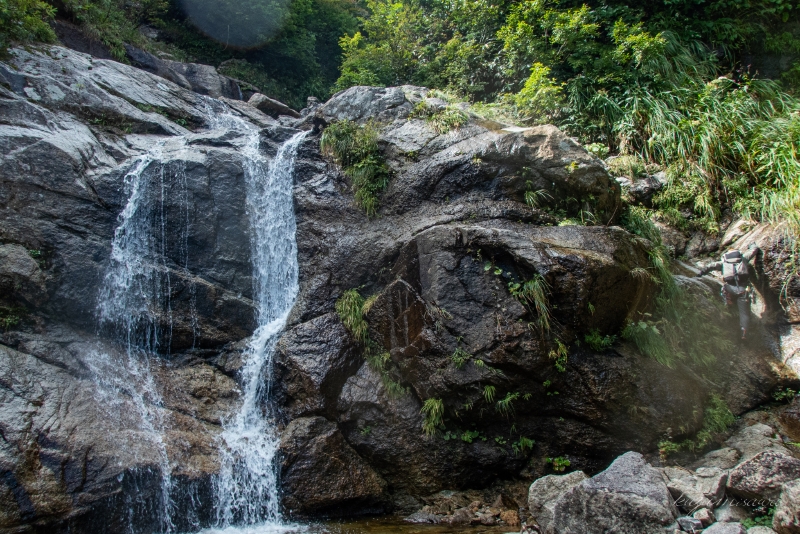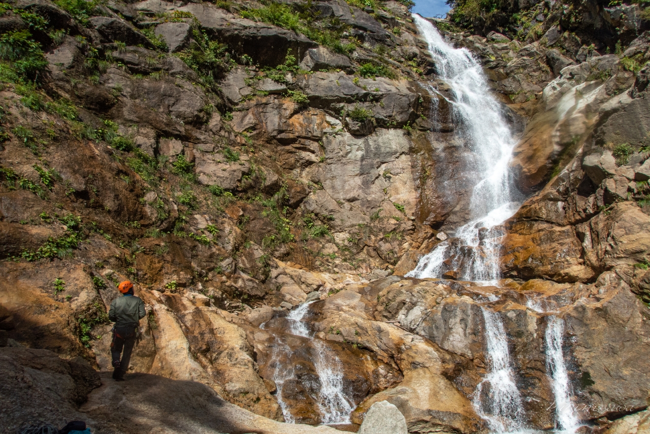 20mのナメ滝や15mの直瀑などを越えると行く手を遮るような40m段瀑が見えてきた。