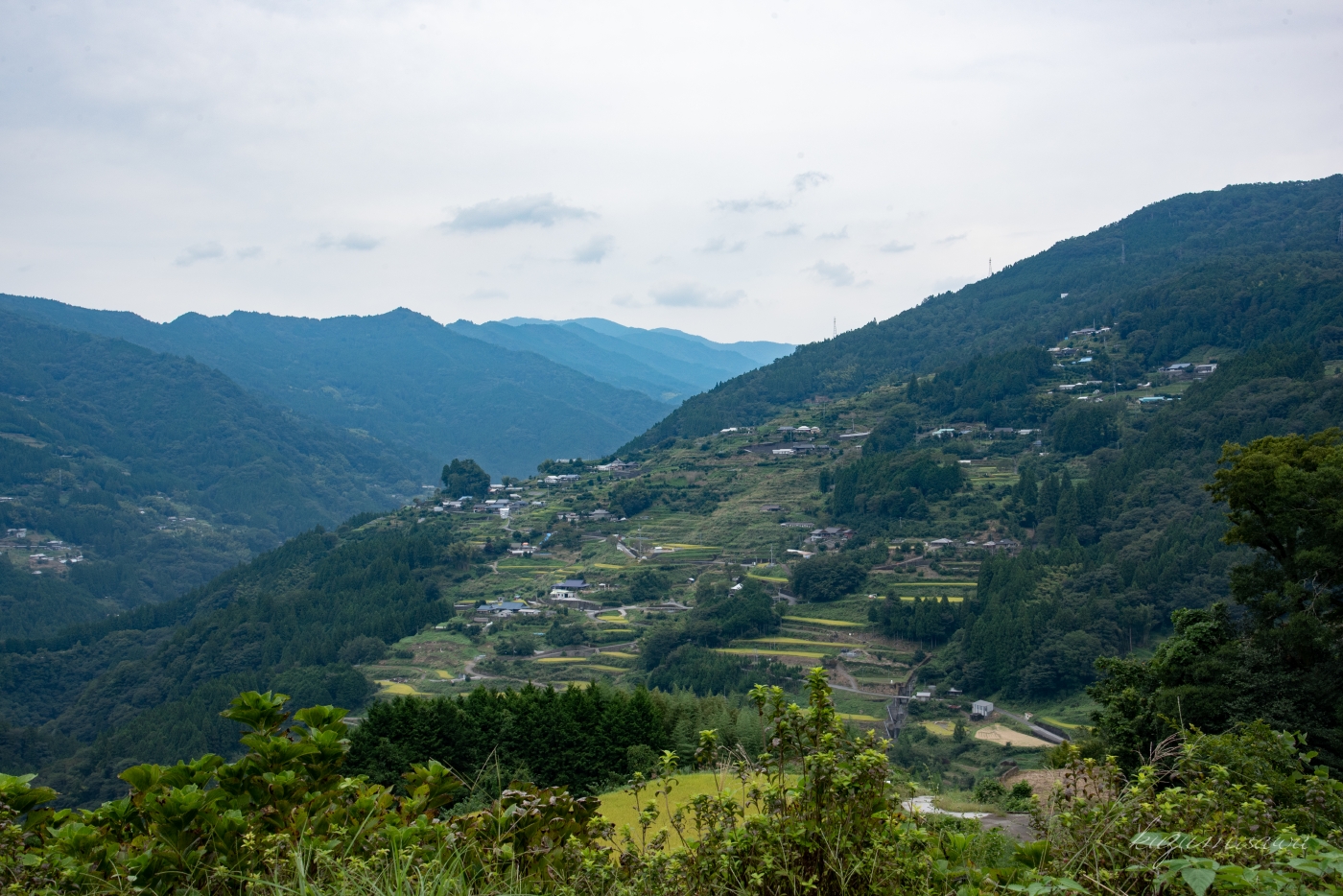 八畝(ようね)の棚田を眼下に眺めながらさらに奥へ奥へ進んでいきます。
