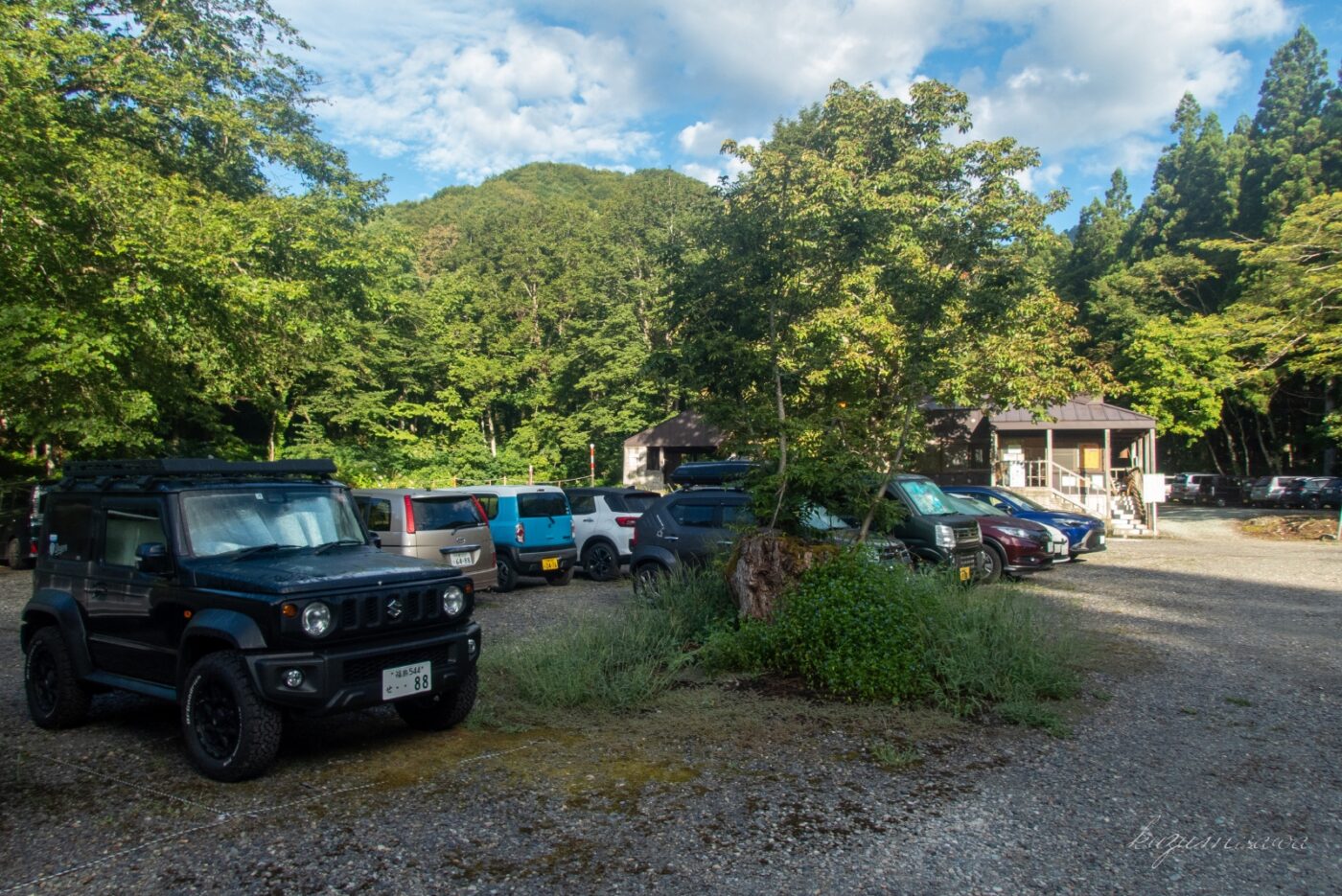 飯豊の雄大な風景を楽しみながら登山口を目指す。