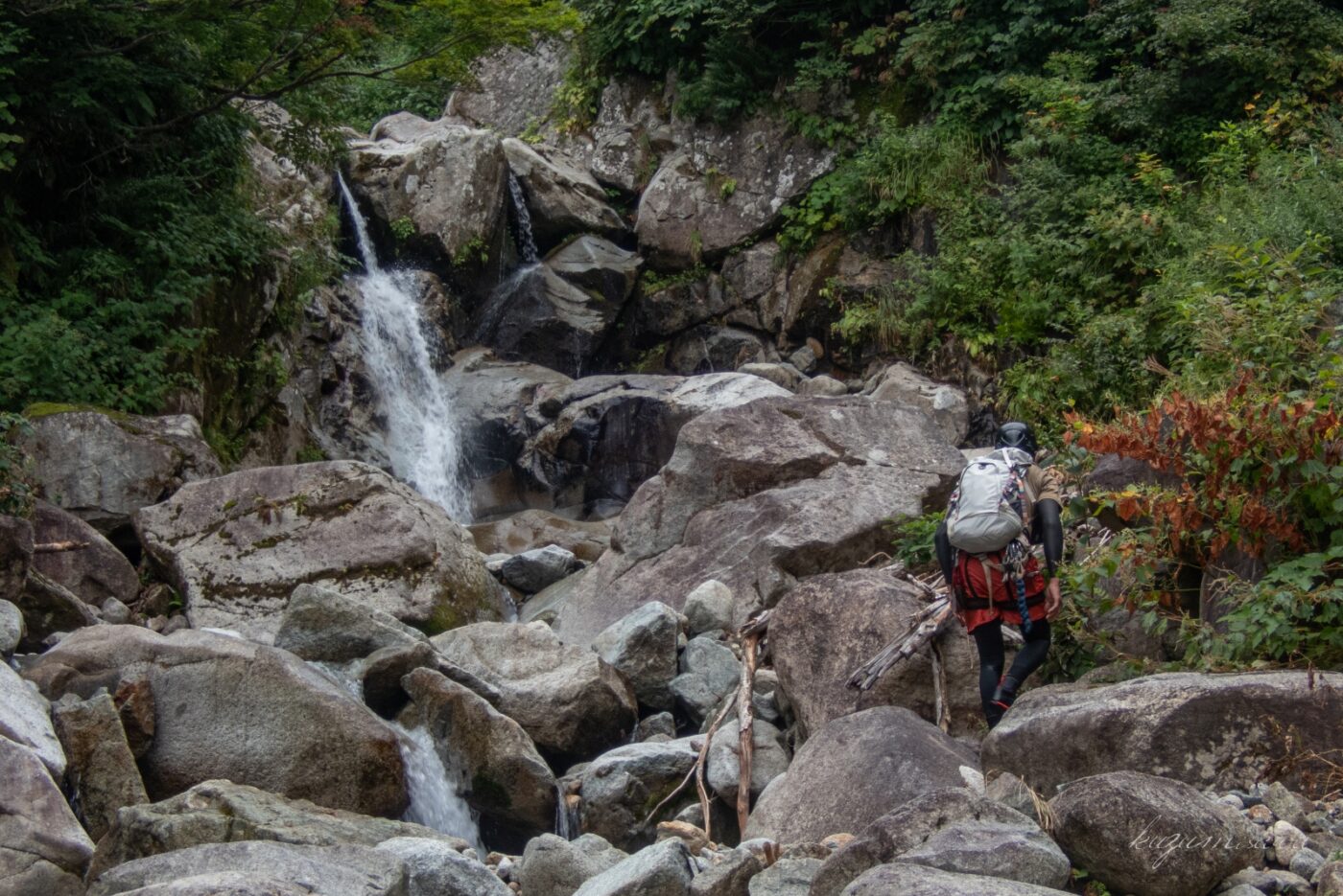 花崗岩が美しい小滝ゾーンが終わると、沢はゴーロ帯に姿を変える。