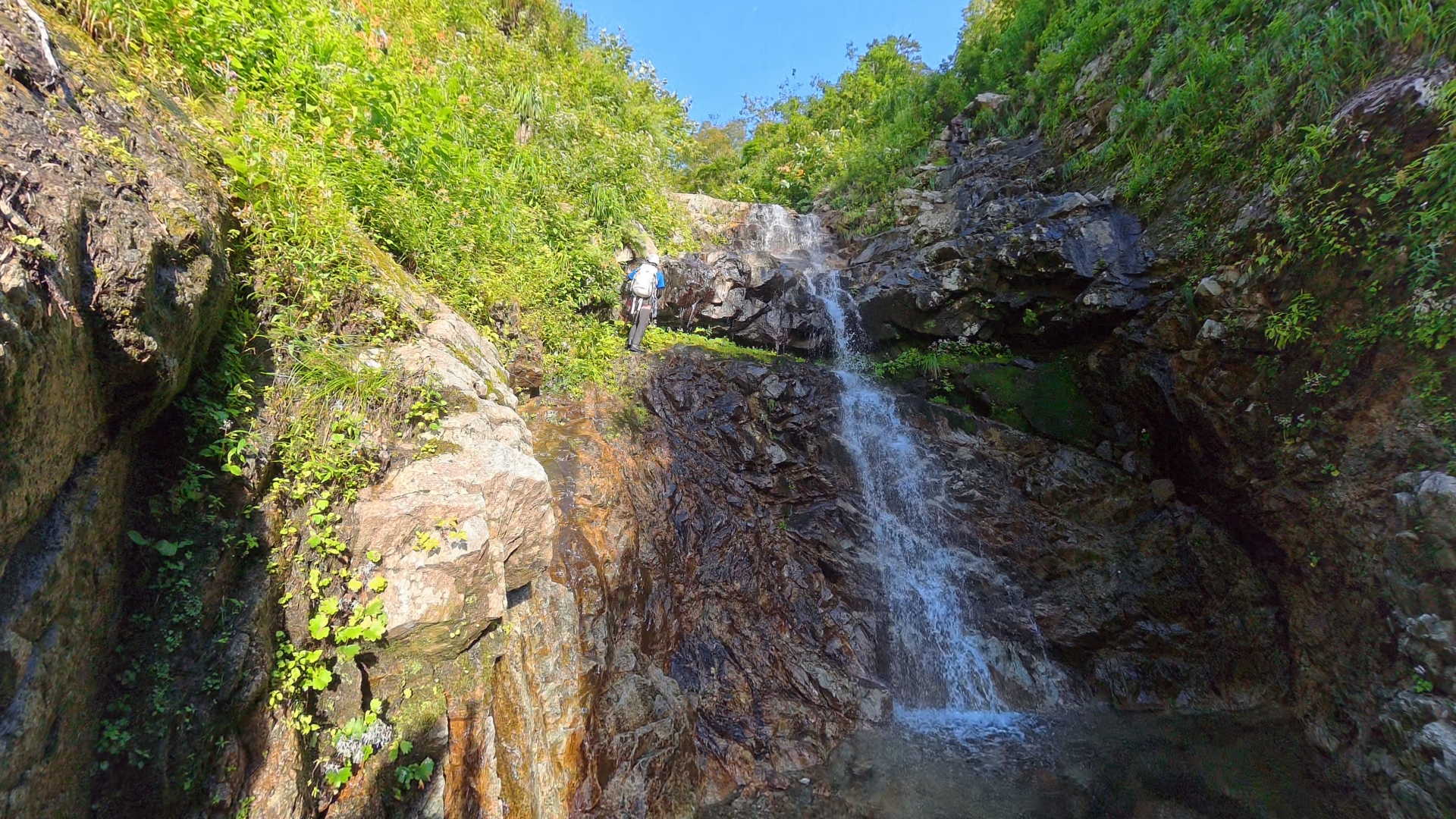 ・稜線までも小滝が多く、最後まで登攀要素が強い訪瀑になる。